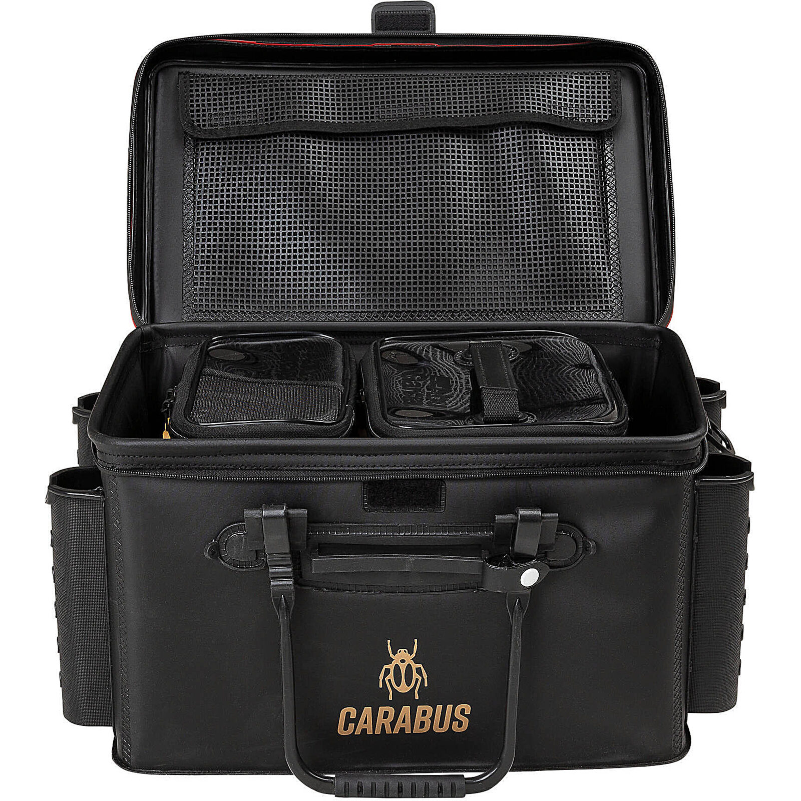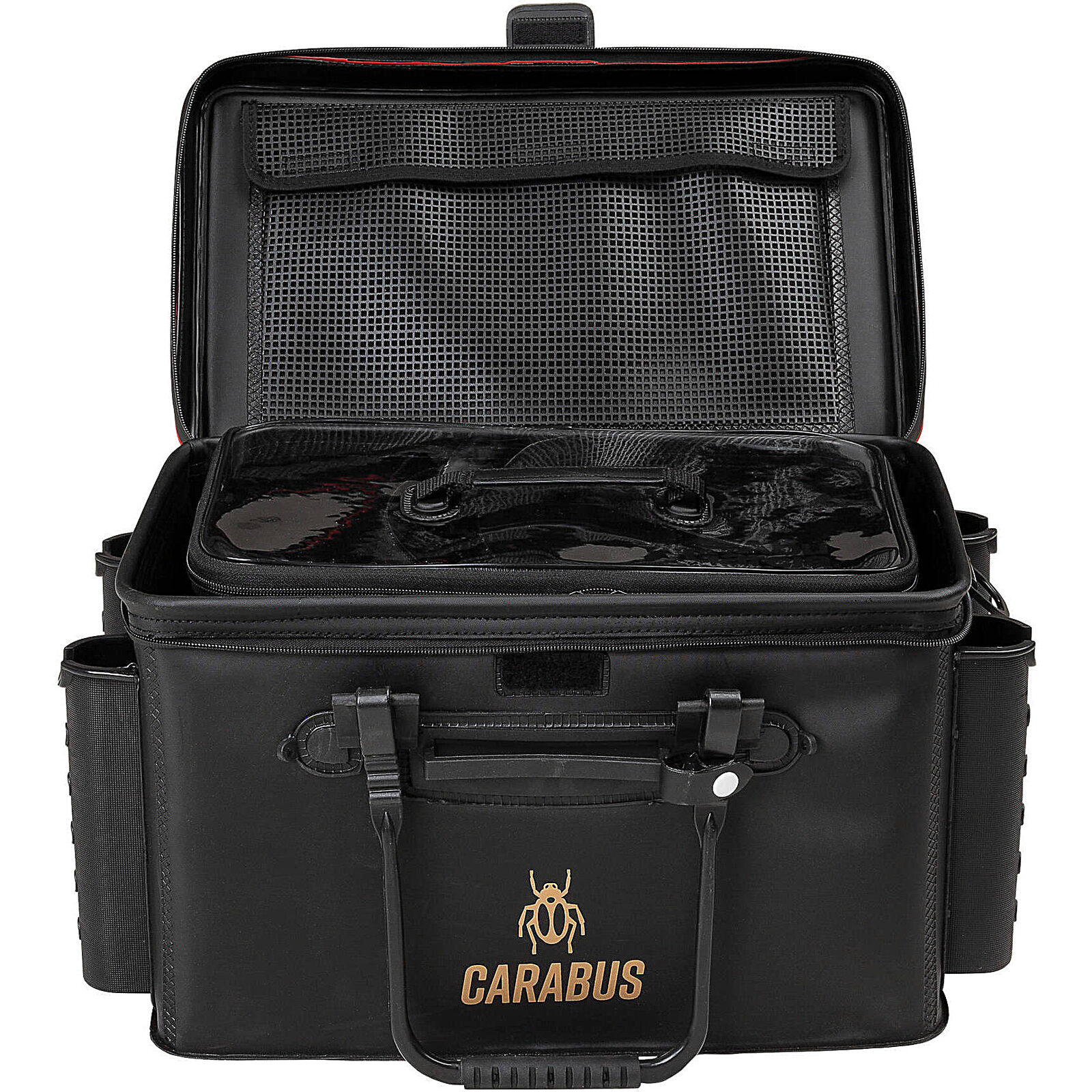 Deze tas is gemaakt van zeer hoogwaardig EVA materiaal. Alle naden zijn geseald waardoor deze tas volledig waterdicht is. In de binnenkant van de deksel zit een gaasvak waar je spullen in kwijt kan zoals je auto sleutels en portemonnee. Aan de zijkant zitten in totaal 4 voorgevormde hengel houders. Hierdoor kun je meerdere extra set-ups meenemen. Door de stevige schouderband en de harde handgrepen is de tas makkelijk te verplaatsen. Je kan de tas eenvoudig inrichten met de Abu Garcia Carabus Bakkan Inserts.