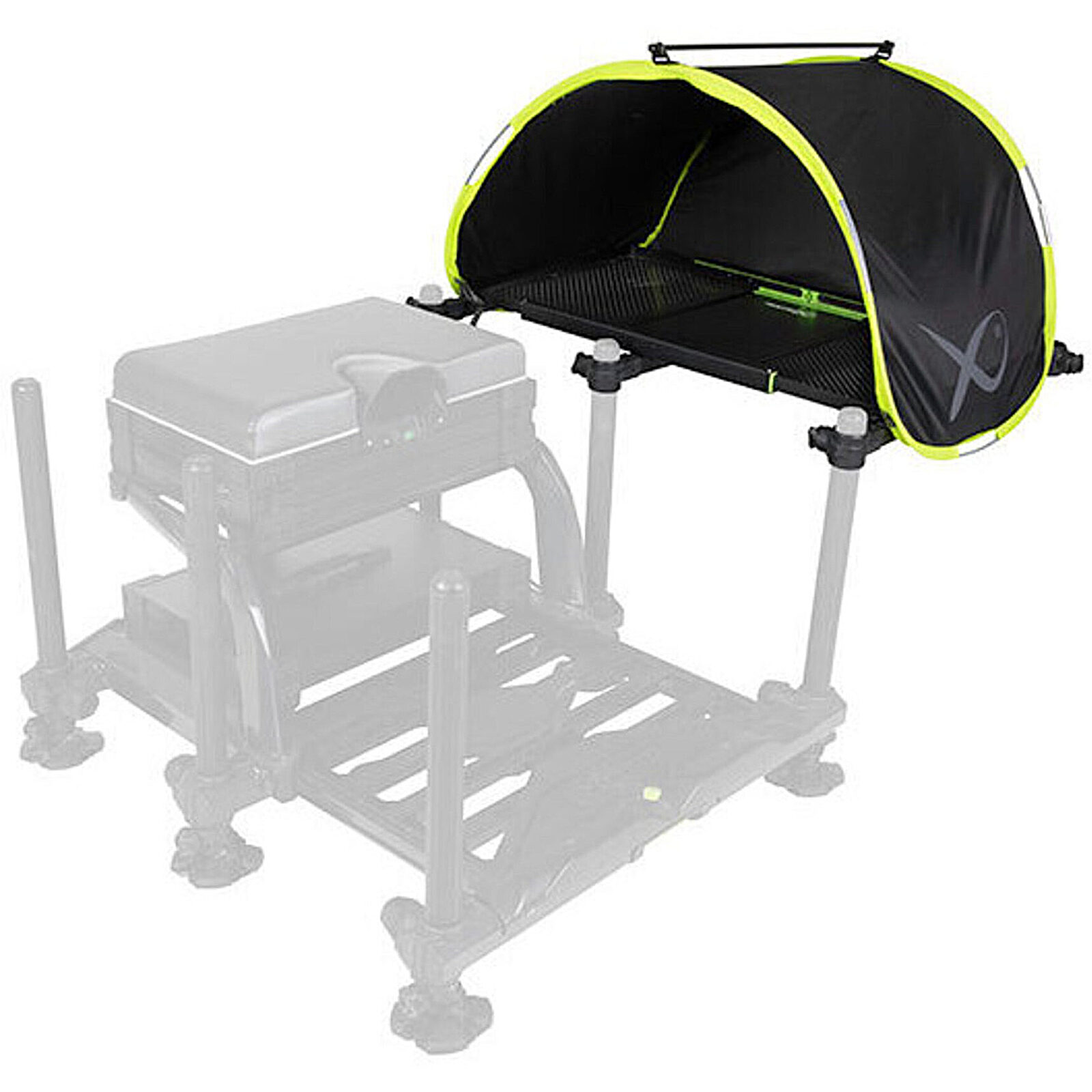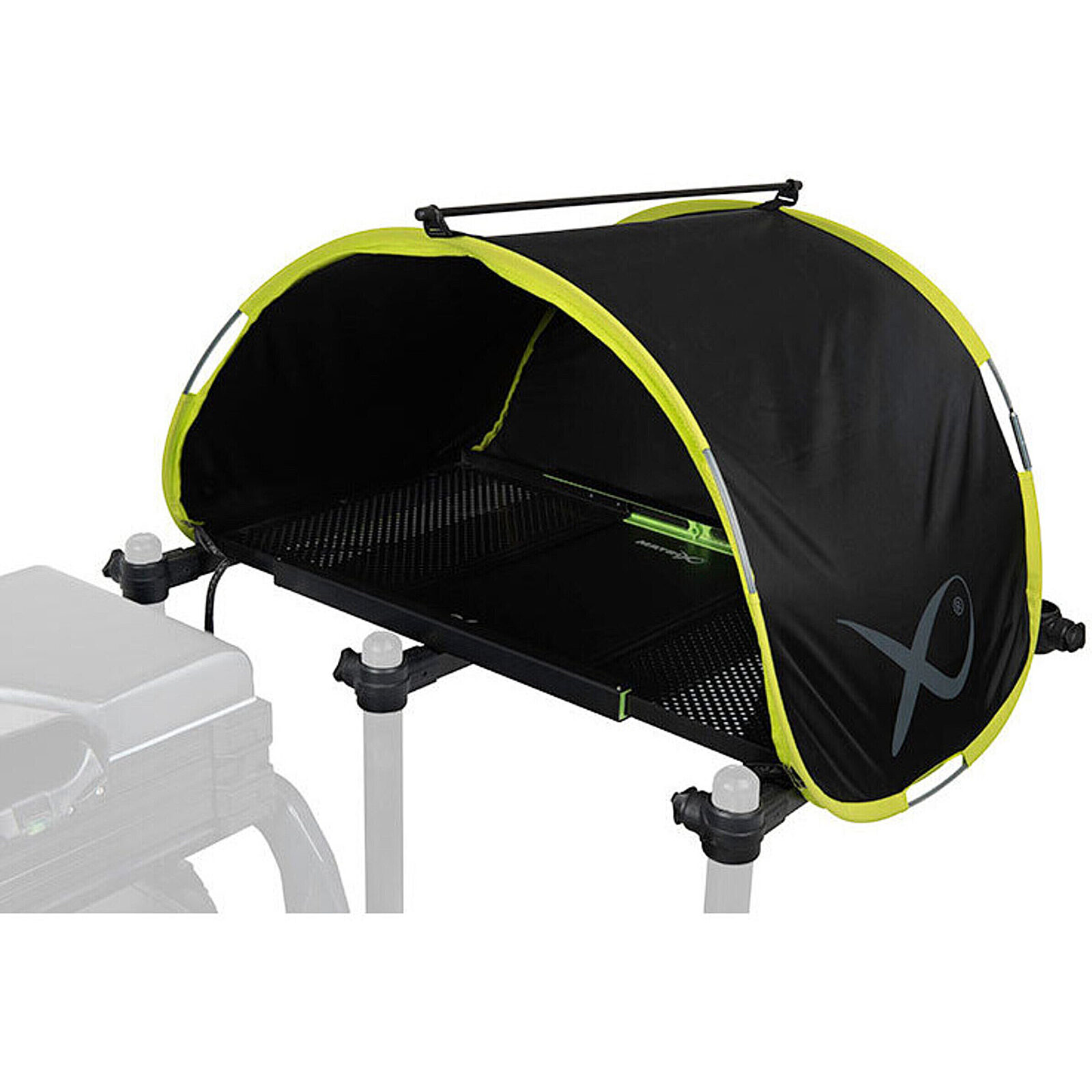 Deze handige accessoire zorgt er voor dat het aas altijd uit de zon of uit de regen staat. Doordat de koepel hoog is is er genoeg ruimte en kun je makkelijk een fles drinken hieronder plaatsen. Gemakkelijk op te bergen naar een compact formaat waardoor deze weinig plaats in neemt tijdens het vervoer. De cover is makkelijk vast te zetten waardoor deze niet door de wind zal weg vliegen.