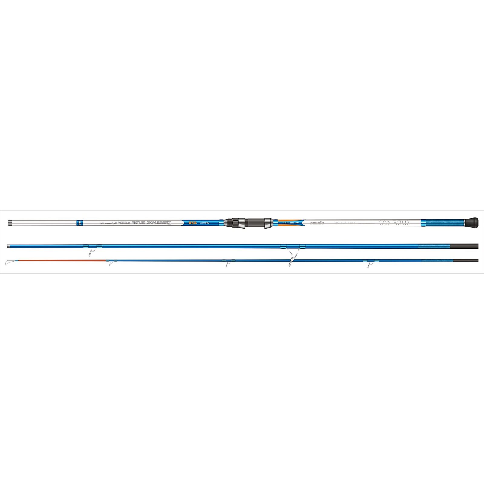 zelf ontworpen en is dus van hoge kwaliteit. De eindkap is ook anti-roest, dit maakt de Okuma Arena Surf een duurzame strandhengel. De Okuma Arena Surf heeft een fraai uiterlijk, voornamelijk blauw met zilveren accenten met een goed zichtbare oranje top. Wordt standaard geleverd met een stoffen beschermhoes.