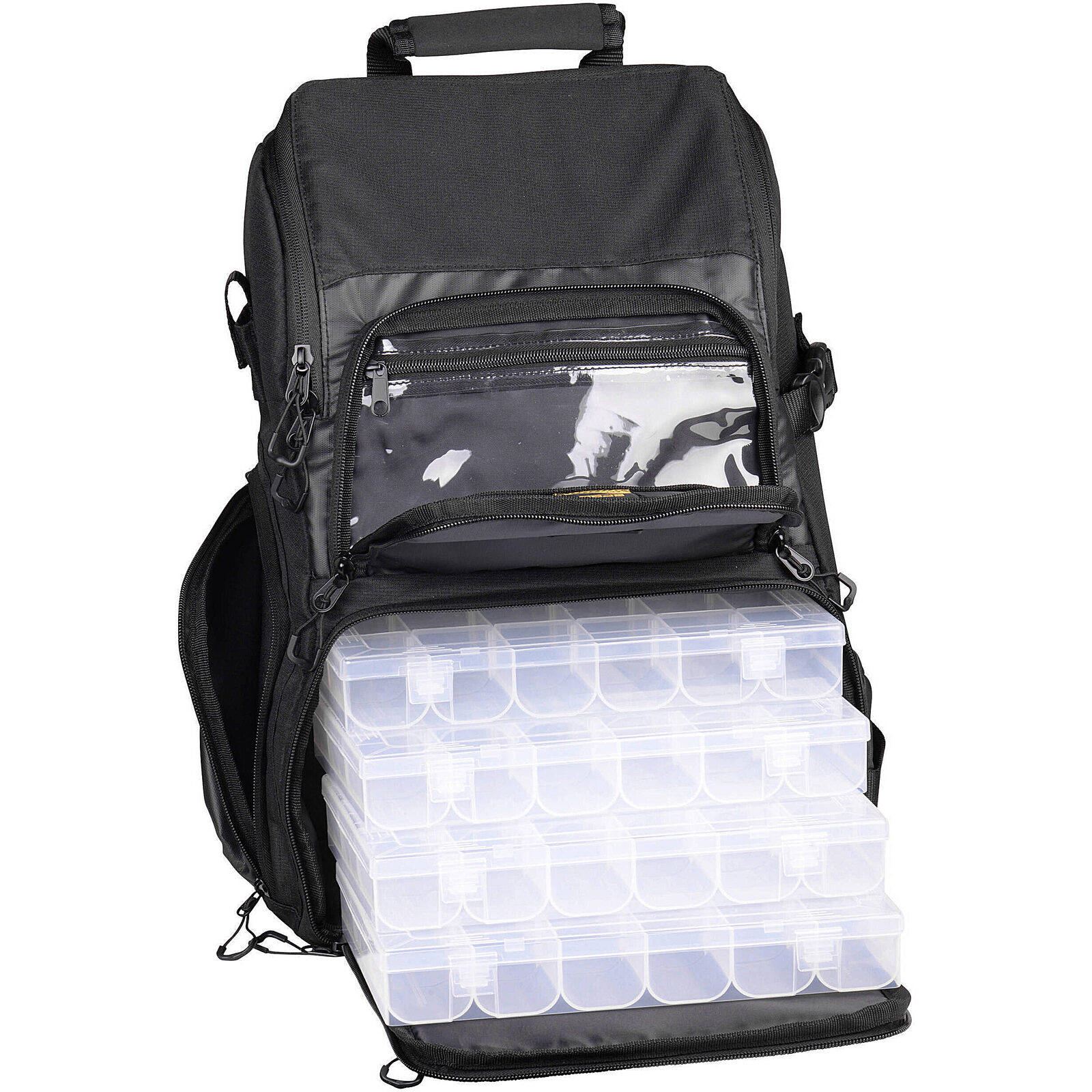 Deze praktische rugzak is voorzien van vele handige opbergruimtes en mogelijkheden. Zo heeft de tas divserse D-ringen waar je tangen en andere tools aan kunt bevestigen. Ook is er aan de zijkant plaats voor een hengel die aan de onderzijde wordt ondersteund en vastgezet kan worden met een clip. Hierdoor kun je naast al je kleinmateriaal ook je net en de hengel met de rugzak vervoeren.