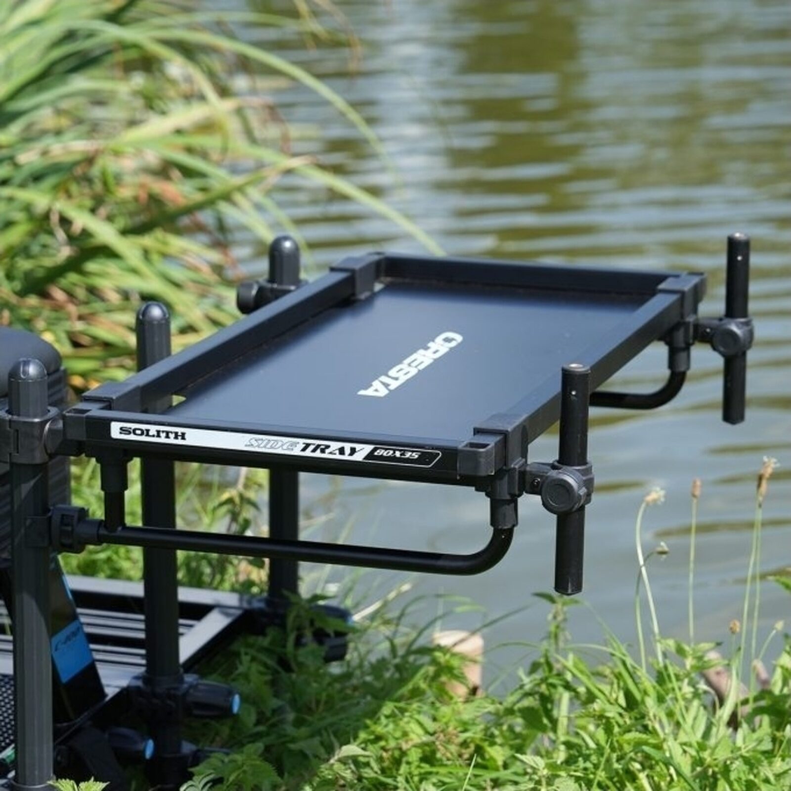 De Cresta Solith Accessoires Side Tray is een veelzijdige toevoeging aan je visuitrusting. Met een binnenmaat van 80x35 cm biedt deze tray ruimte voor 8 grote aasdozen en andere benodigdheden zoals hakendozen en voerbakken. De tray is uitgerust met afneembare banksticks met schroefdraad, ideaal voor het monteren van een topset steun of ander hulpstuk. Dankzij het dubbel sluitmechanisme blijven je spullen veilig op hun plek.