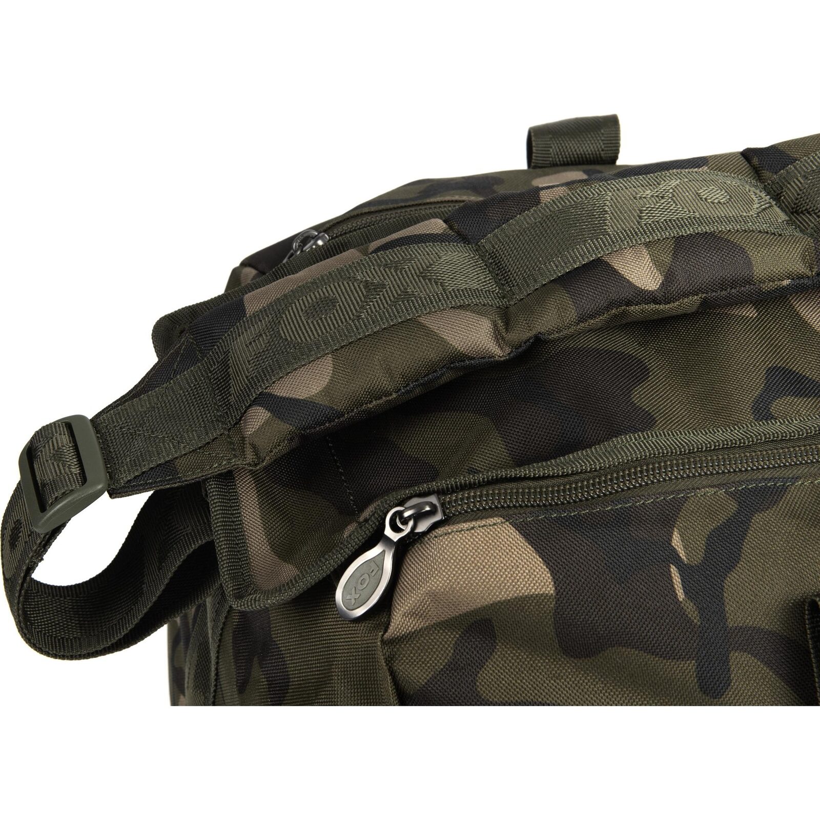 De tas is uitgerust met twee enkele ritsen voor gemakkelijke toegang tot het hoofdcompartiment. De gevoerde, afneembare camo schouderriem en de gevoerde handgrepen zorgen er voor dat je de tas comfortabel kunt dragen, zelfs als hij vol is. Het kleine voorvak met rits is ideaal voor kleinere items die je snel bij de hand wilt hebben. Gemaakt van slijtvast en waterbestendig 500D behandeld polyester, is deze tas bestand tegen alle weersomstandigheden. Het unieke Fox Camo design zorgt er voor dat je stijlvol voor de dag komt, passend bij andere Fox producten.
