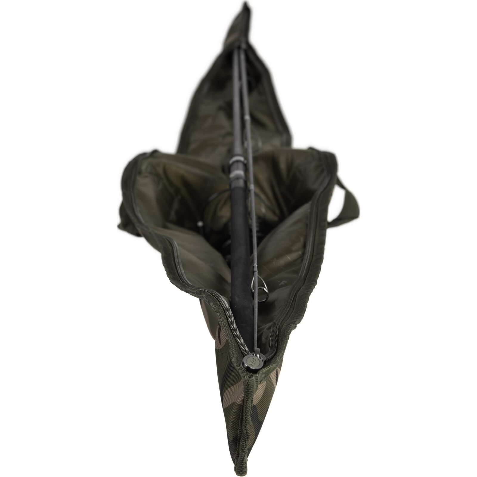 Met de Fox Camolite Single Sleeve berg je je hengel veilig en stijlvol op. Deze sleeve is speciaal ontworpen voor één opgetuigde hengel en biedt ruimte voor big pit molens en 50mm startogen. Het unieke Fox camo design zorgt er voor dat je er altijd goed uitziet aan de waterkant.