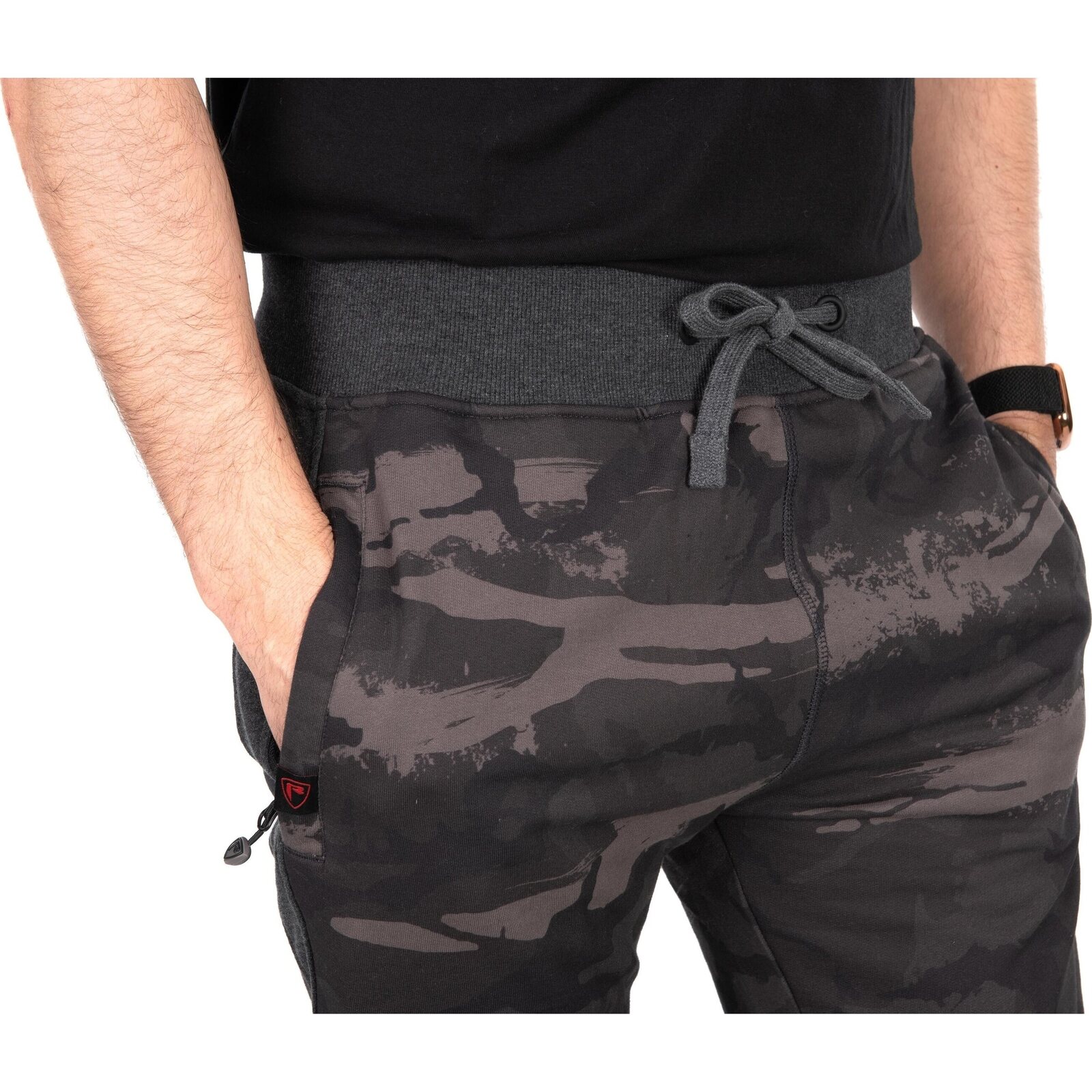 De Fox Rage Voyager Camo joggers zijn gemaakt voor de moderne roofvisser die comfort en functionaliteit belangrijk vindt. Het opvallende Rage camo design zorgt er voor dat je meteen herkend wordt als serieuze sportvisser. Dankzij de mix van 80% katoen en 20% polyester voelt de stof zacht aan, biedt het warmte en blijft het duurzaam, of je nu aan de waterkant zit te wachten op een aanbeet of thuis ontspant. Het moderne, taps toelopende model met contrasterende grijze boorden en een stevig trekkoord zorgt voor een comfortabele pasvorm die de hele dag goed blijft zitten. De grote zakken met rits houden je handen warm en bieden ruimte voor je belangrijkste spullen, terwijl de achterzak met logo het geheel afmaakt.