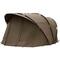 De Fox Voyager Bivvy is ontworpen met het oog op comfort en functionaliteit. Het stevige 19mm aluminium frame, compleet met full frame support, zorgt voor stabiliteit, zelfs bij onstuimig weer. De grote mozzy mesh panelen aan de voor- en achterkant bieden ventilatie en houden insecten buiten. Met de two-way letterbox deur kun je kiezen tussen mozzy mesh, transparant PVC of een solide deur, afhankelijk van je voorkeur. De voorzijde kan eenvoudig worden opgerold om een open shelter te creëren, ideaal voor zonnige dagen. Twee rod straps aan de voorkant maken het makkelijk om je hengels veilig op te bergen.