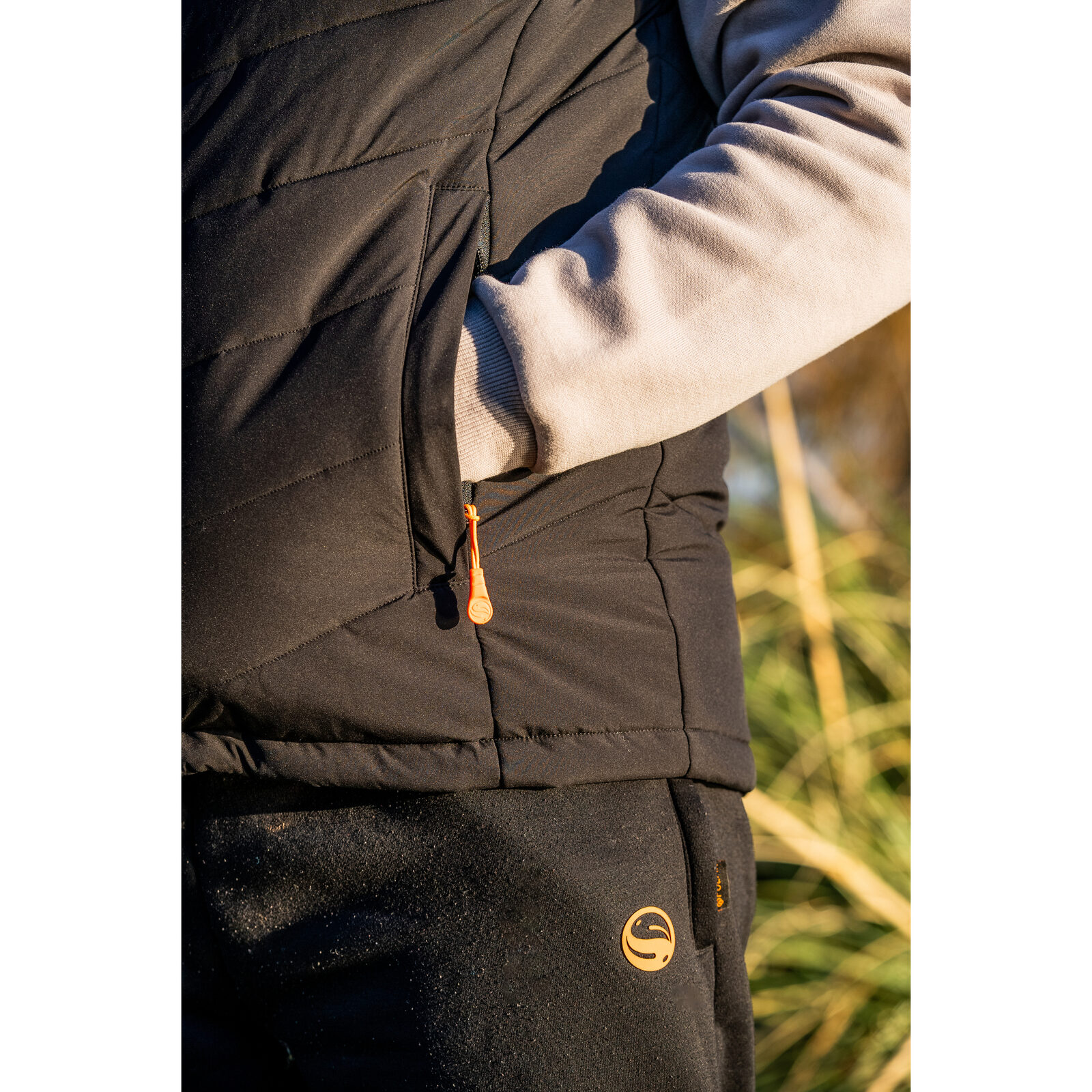 Met fleece mouwen en een afritsbare capuchon biedt het gilet optimale flexibiliteit en comfort. Het puffer-achtige middenstuk, voorzien van holle vezeltechnologie, zorgt voor maximale warmte rond de romp zonder extra gewicht. Het winddichte middenstuk beschermt tegen gure wind, terwijl de verlengde achterzijde tocht voorkomt en er voor zorgt dat het gilet goed blijft zitten tijdens het werpen of het landen van vis. De fleece-gevoerde capuchon en hoge ritssluiting in de nek bieden extra bescherming tegen kou.