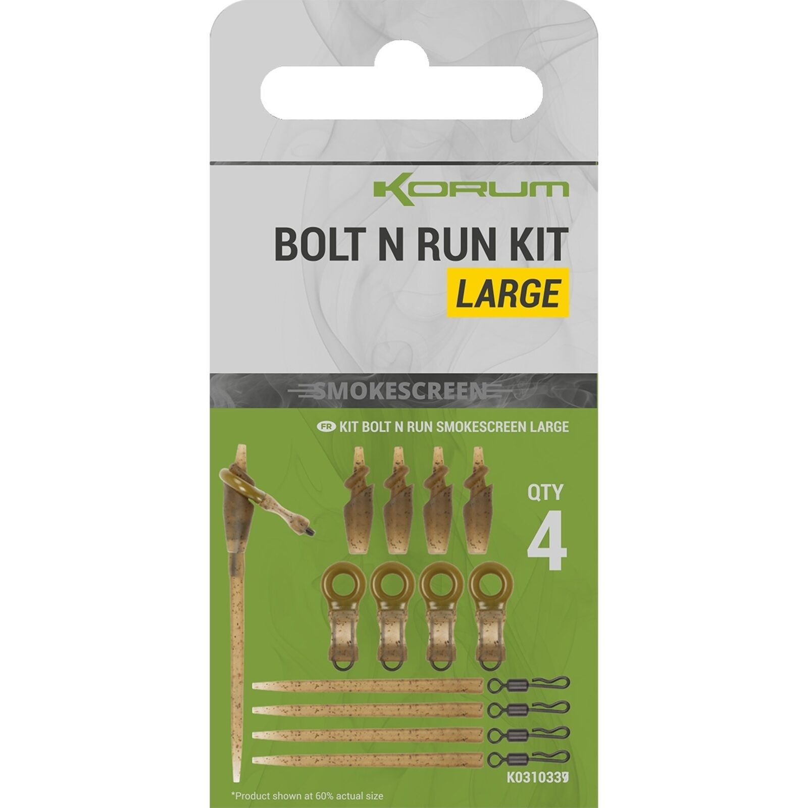 De Smokescreen Bolt N Run Kit van Korum biedt een geavanceerde camouflage end tackle, ideaal voor een veilige, semi-fixed tangle-vrije setup. De verdikking op de angled buffer bead zorgt er voor dat je de run semi-vast in positie kunt zetten voor de worp, wat meer weerstand biedt tijdens de aanbeet dan standaard schuivende montages. De QC swivel aan de binnenzijde van de bead is ontworpen om niet vast te raken aan de anti-tangle sleeve.