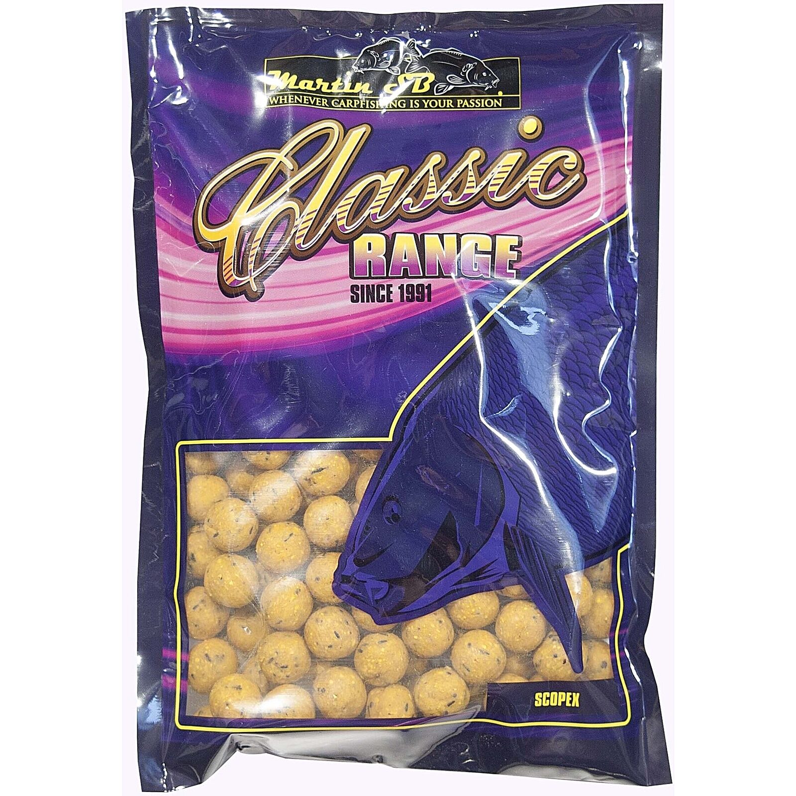 Of je nu wilt voorvoeren of direct wilt vissen, de Martin SB Scopex boilies zijn ideaal. De unieke smaak en geur zorgen er voor dat vissen de boilies snel herkennen en beginnen te azen. Ze zijn ook perfect voor instant gebruik. Combineer ze bijvoorbeeld met een fluor pop-up voor zowel een geur- als visueel signaal dat geen enkele karper kan weerstaan.
