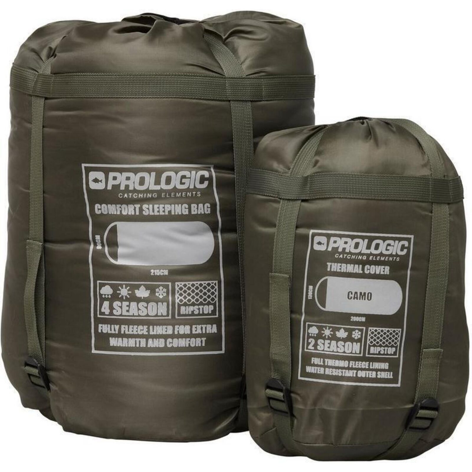 Beide items worden geleverd in compacte compressiedraagzakken, wat het transport vergemakkelijkt. De slaapzak en thermische hoes bieden samen een hoog niveau van warmte en comfort, waardoor je je afvraagt hoe je ooit zonder hebt kunnen vissen in de kou. Maar ze zijn ook perfect voor het vissen in de zomer, waarbij je bovenop de slaapzak kunt slapen met de thermische hoes als dekbed.