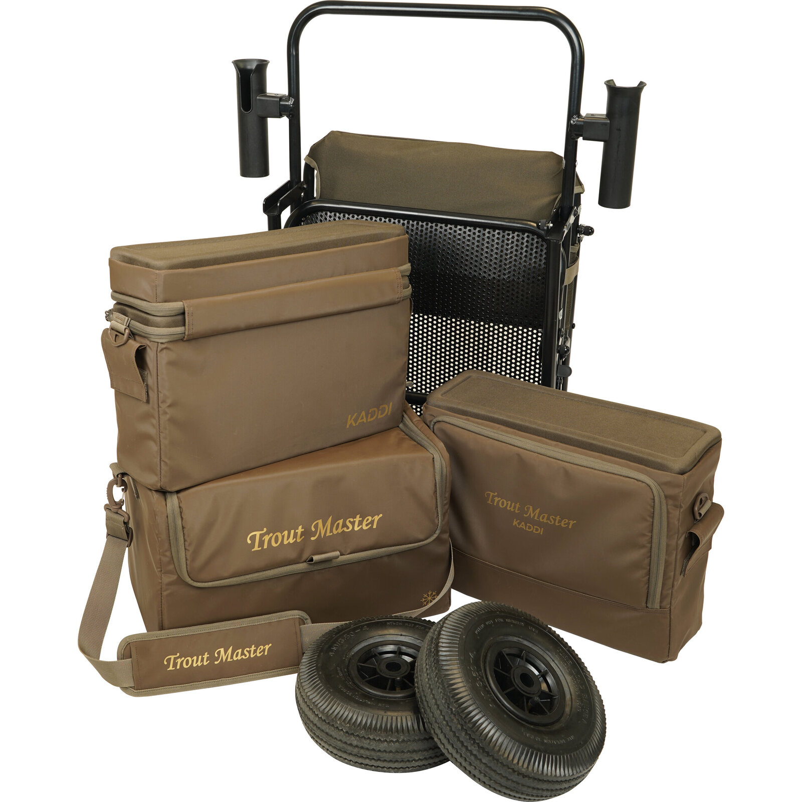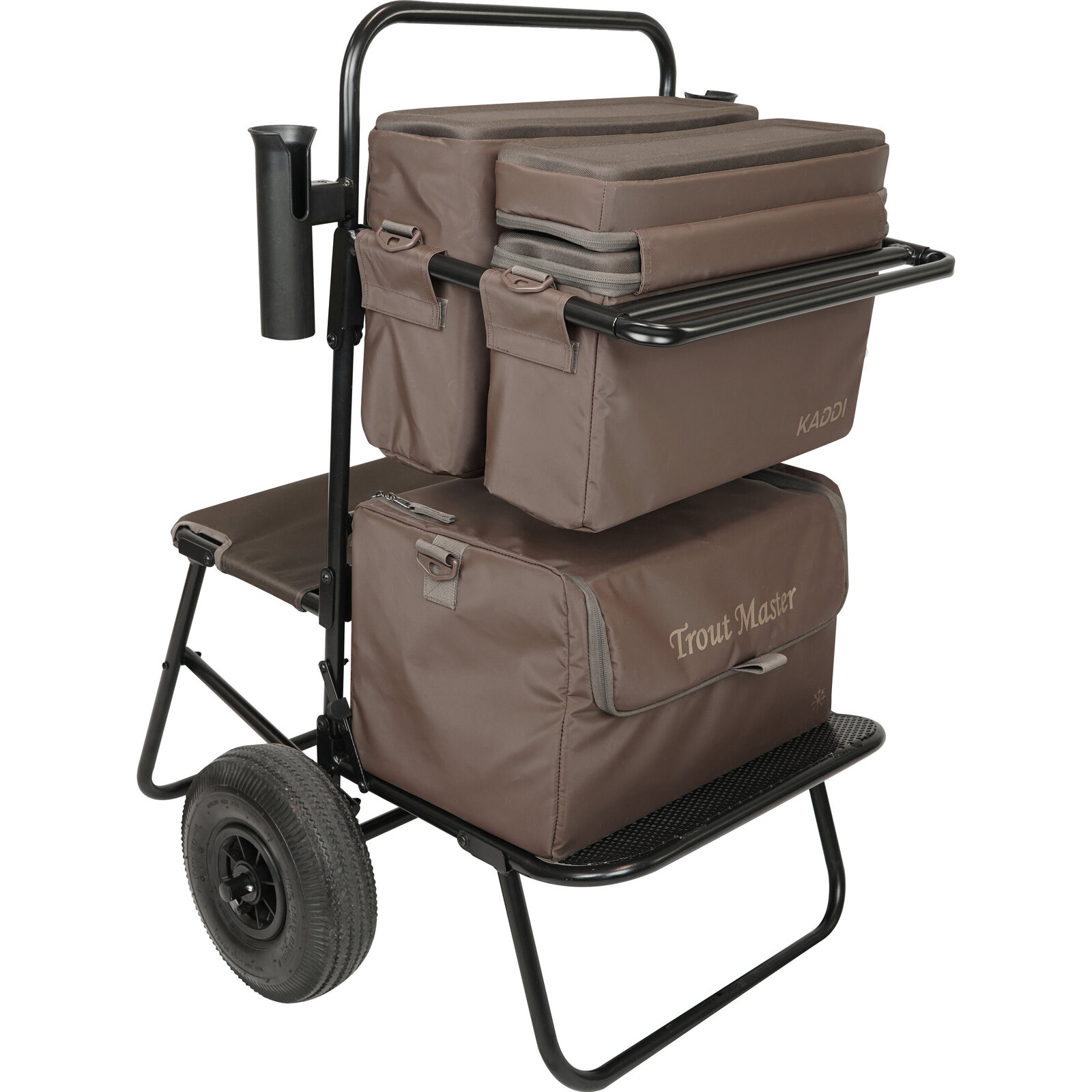 De Trout Master Kaddi is een stevige en praktische barrow die het vervoeren van je visspullen aanzienlijk makkelijker maakt. Deze transportkar is uitgerust met twee wielen voor extra stabiliteit, zodat je ook op oneffen terrein soepel vooruitkomt. Je krijgt er drie stijlvolle old skool bruine vistassen bij, waarmee je al je materiaal overzichtelijk en georganiseerd kunt meenemen. Dankzij de twee geïntegreerde hengelsteunen neem je je hengels veilig en comfortabel mee naar elke stek. De robuuste constructie zorgt voor een draagvermogen tot 75 kg, waardoor de Kaddi geschikt is voor intensief gebruik. Je kunt de kar eenvoudig uit elkaar halen, zodat hij zonder moeite in vrijwel elke auto past.