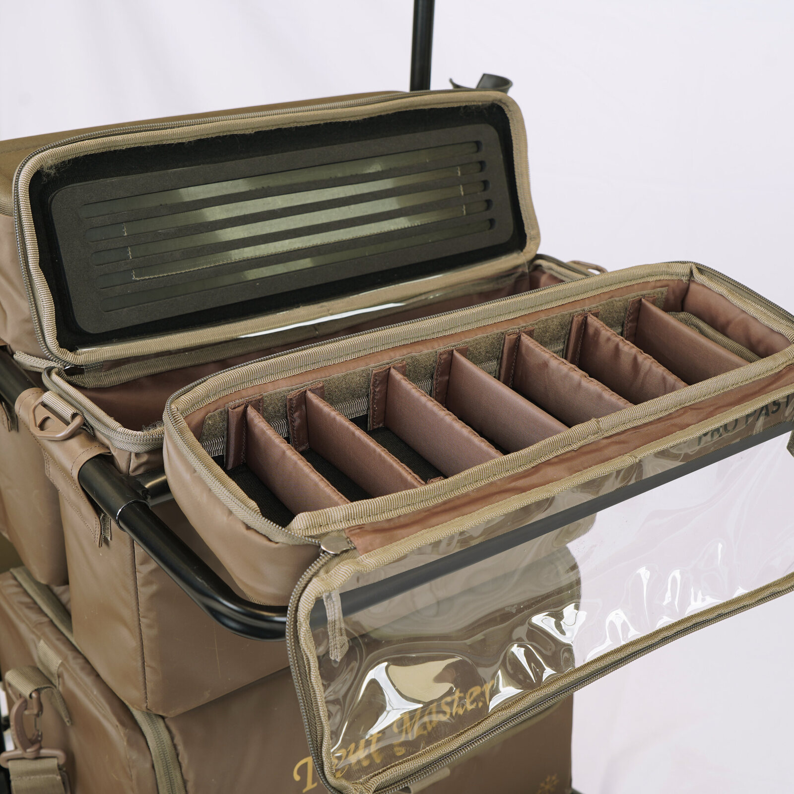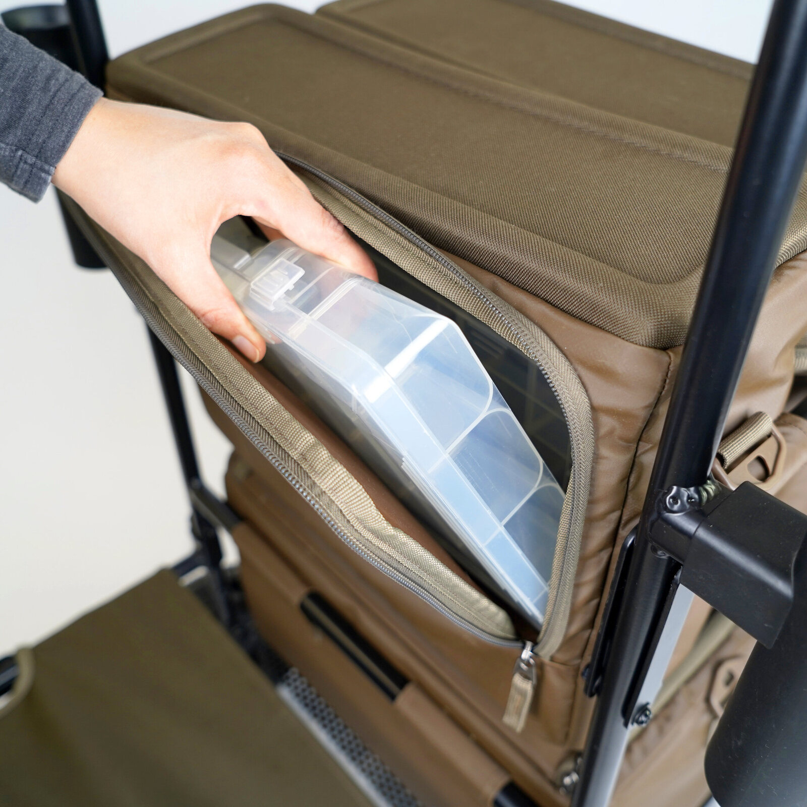 - Geïntegreerde hengelsteunen voor veilig transport van je hengels
