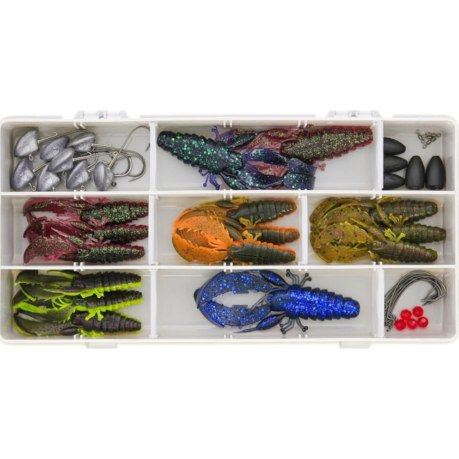 Met de Westin Crecraw Box heb je alles wat je nodig hebt voor een succesvolle visdag. De set bevat onder andere kogelgewichten, CreCraw-aasjes in verschillende kleuren en maten en diverse haken en kralen. Dit maakt het vissen met imitatiekreeftjes, zoals de CreCraw, zeer effectief voor soorten als baars, snoekbaars, forel en snoek.